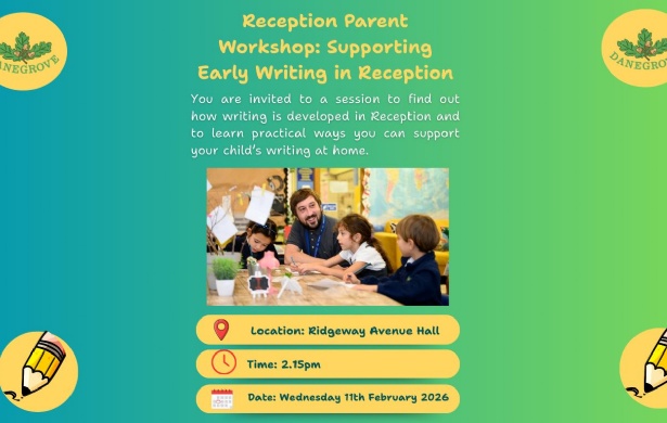 Reception Parent Workshop: Supporting Early Writing in Reception on Wednesday, 11th February 2026. This will happen at 2:15pm at Ridgeway Ave Hall. See you all there!
